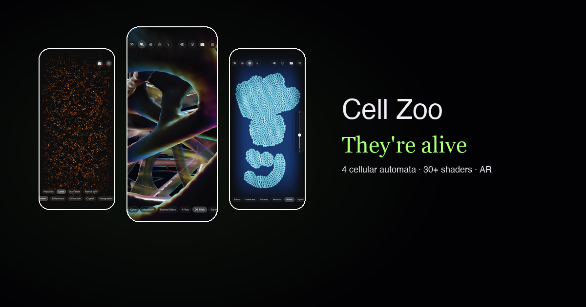 All content, shaders, simulations, and visual output generated by Cell Zoo are the property of svetim.fm. Screenshots and recordings you create from the app are yours to use freely.